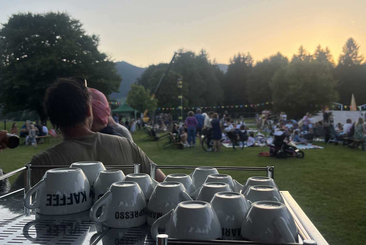 Von Anfang an waberte im Hinterkopf immer die Idee nicht nur ein wöchentliches CafeRadl zu etablieren, sondern auch mal etwas „größeres“, „anderes“ zu machen. So wurde aus der Idee ein OpenAir Kino zu veranstalten 2024 dann eine großartige Premiere des Sommerkinos Fischbachau. Mit Unterstützung vieler Ortsvereine, der Gemeinde und zahlreichen helfenden Händen konnten wir 2 unvergessliche Kinoabend in Fischbachau ermöglichen. Das wollen wir jetzt jährlich wiederkehrend etablieren.